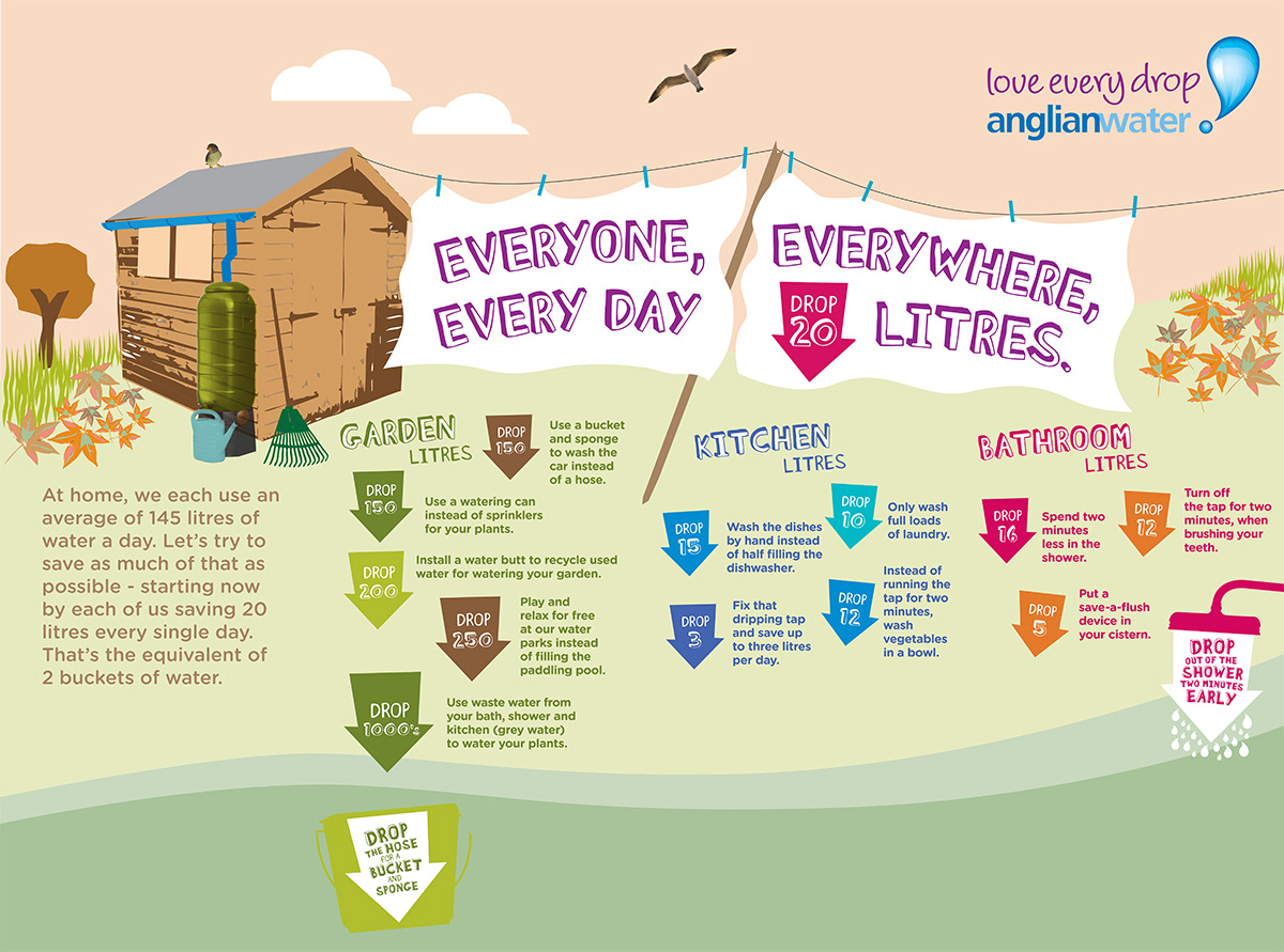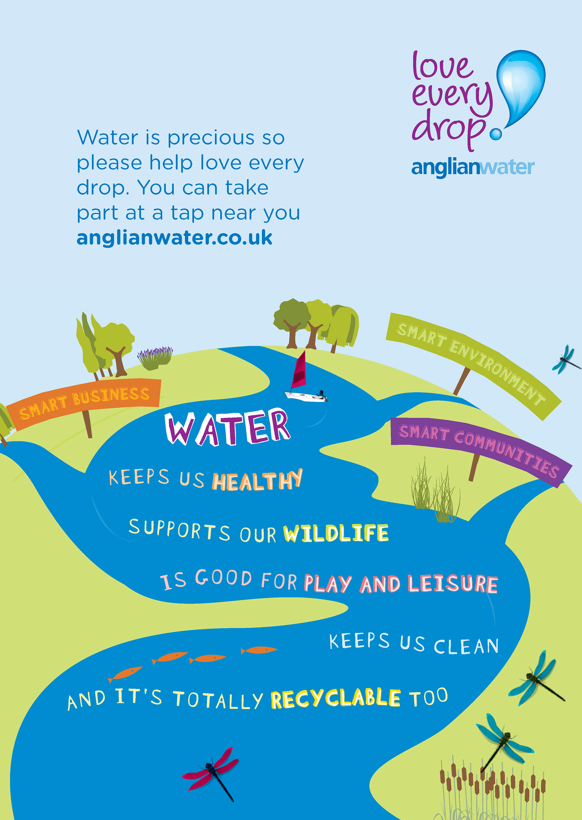 Various graphic and illustrative projects working within Anglian Water's Love Every Drop corporate guidelines.