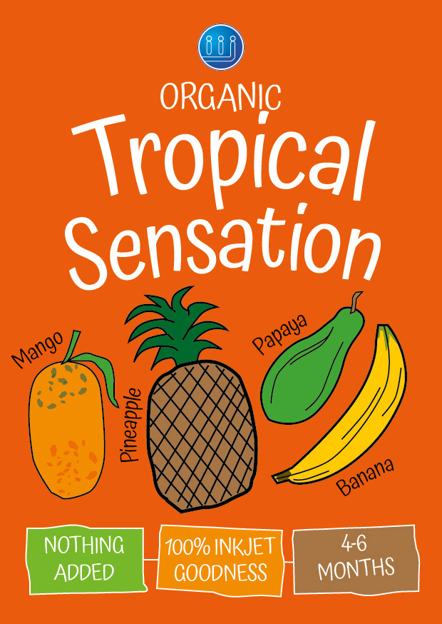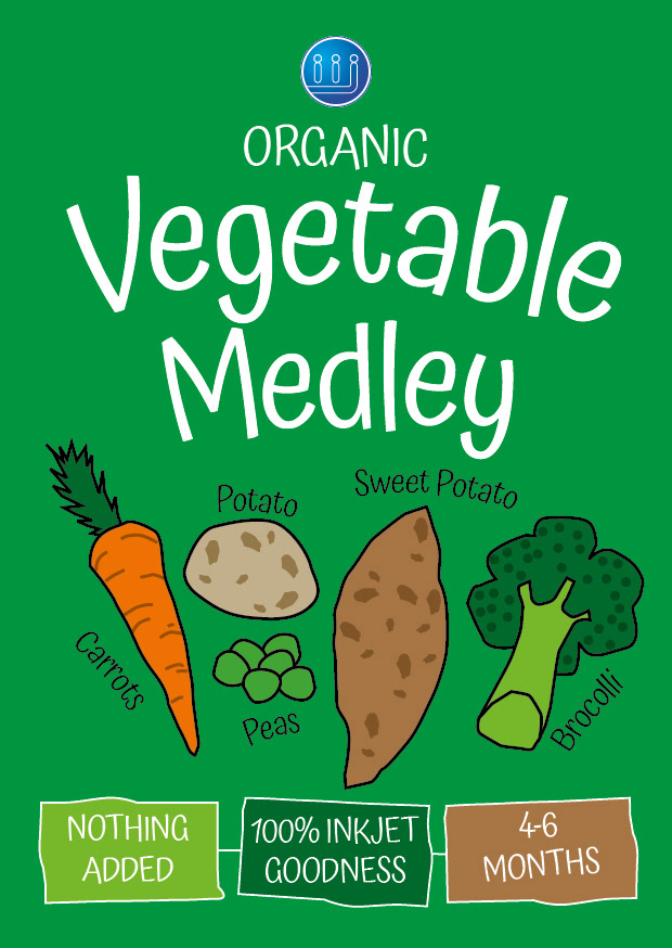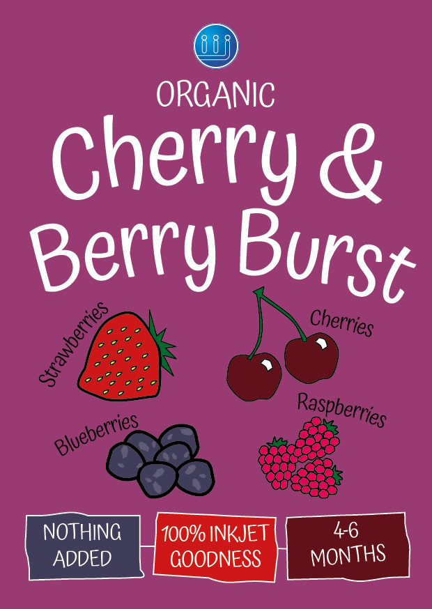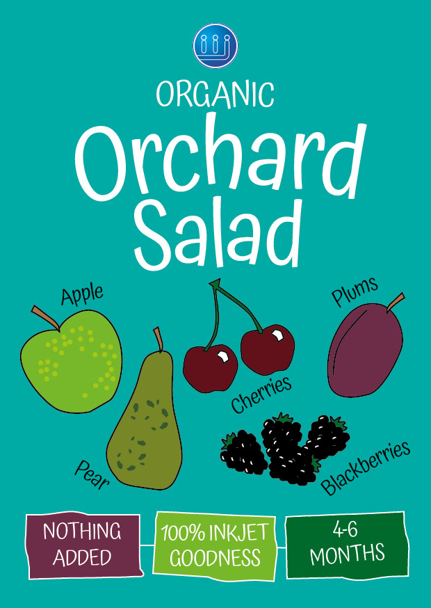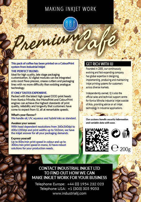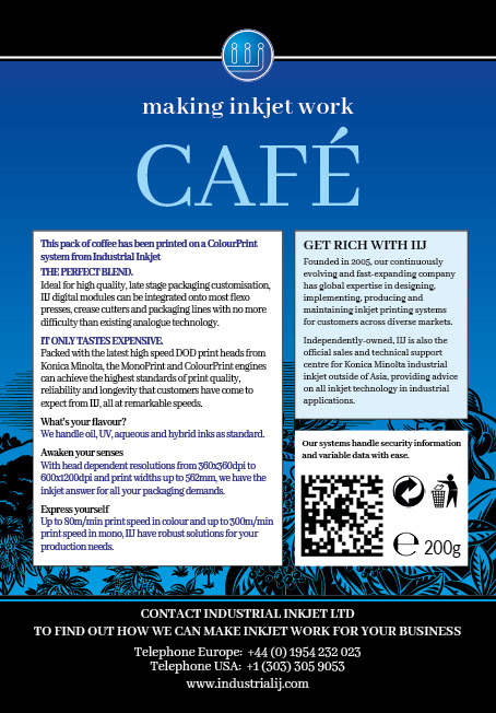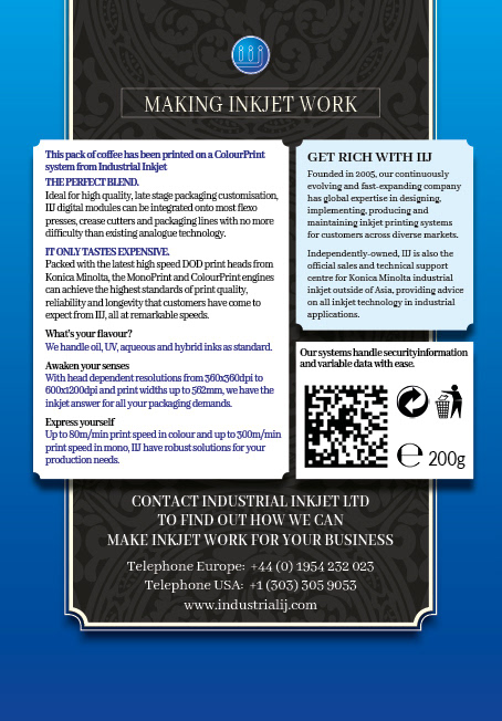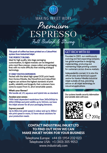 Packaging samples designed to demonstrate the capability of digital printing equipment for the food industry.