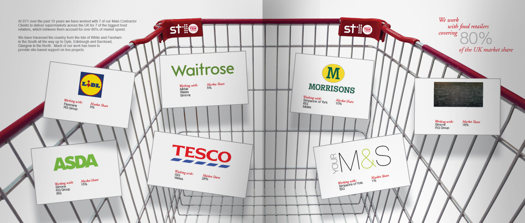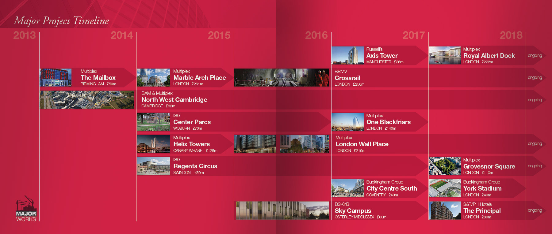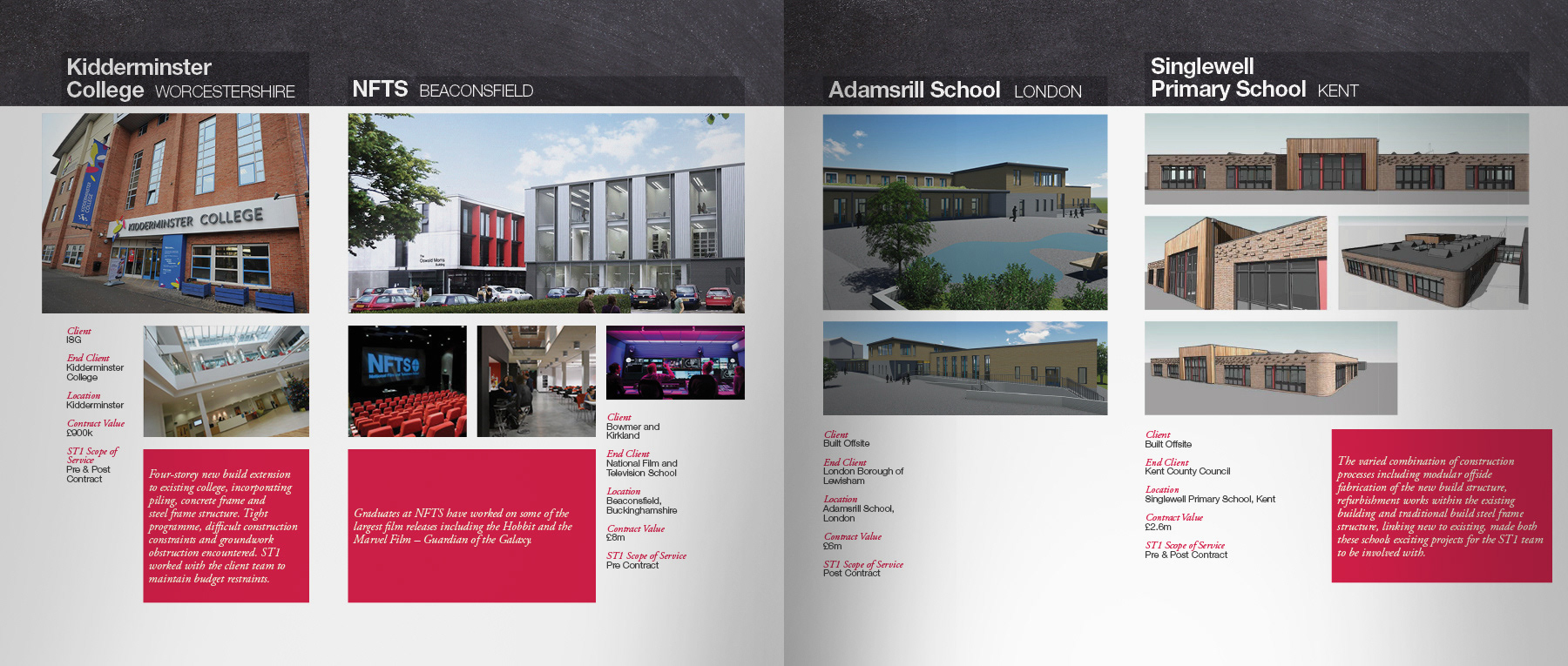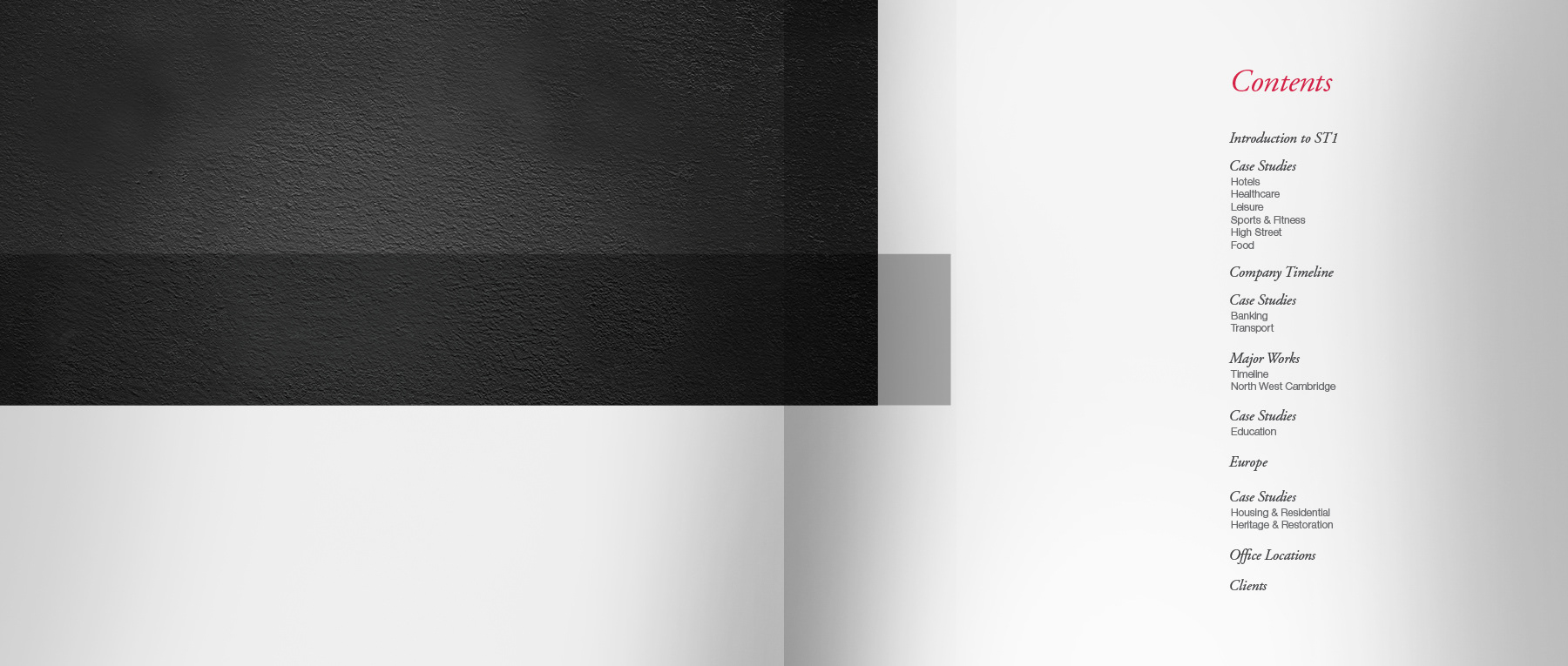 40 page corporate hardback book to celebrate 10 years of business, raise company profile and showcase major construction projects to potential new customers.